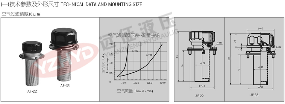 AF-22、AF-35型空氣濾清器外形類似于油箱蓋,靠螺釘固定于油箱上,用于油箱內空氣的過濾。該濾清器有空氣過濾器和加油過濾器兩部分構成,不僅可以紡織顆粒污染物通過油箱呼吸口侵入系統,還可以防止加油過程中混入顆粒污染物。